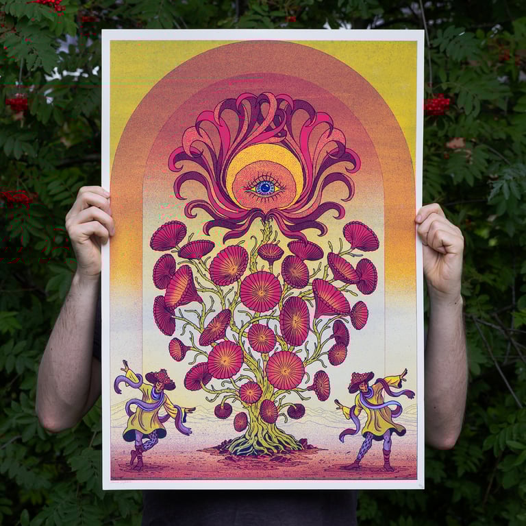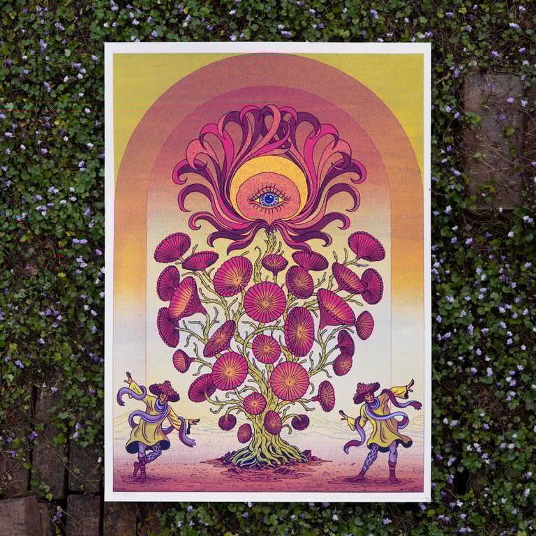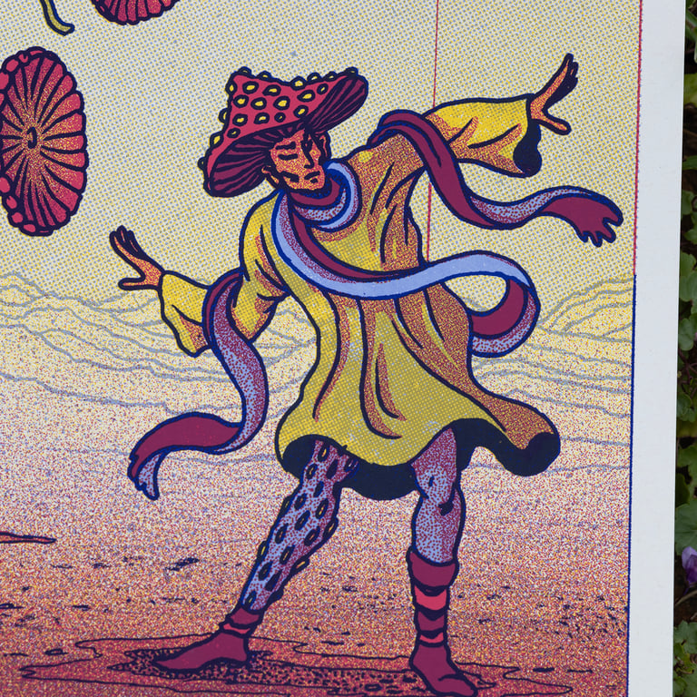 Four colors with overlaps. Screen printed on fedrigoni woodstock betulla 285 gr.
