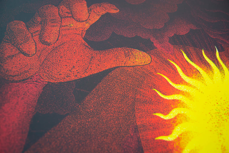 Screenprinted artprint. Four colors with overlaps, screenprinted on 300 gr warm white paper. Numbered and signed, edition of 100. 70x50cm