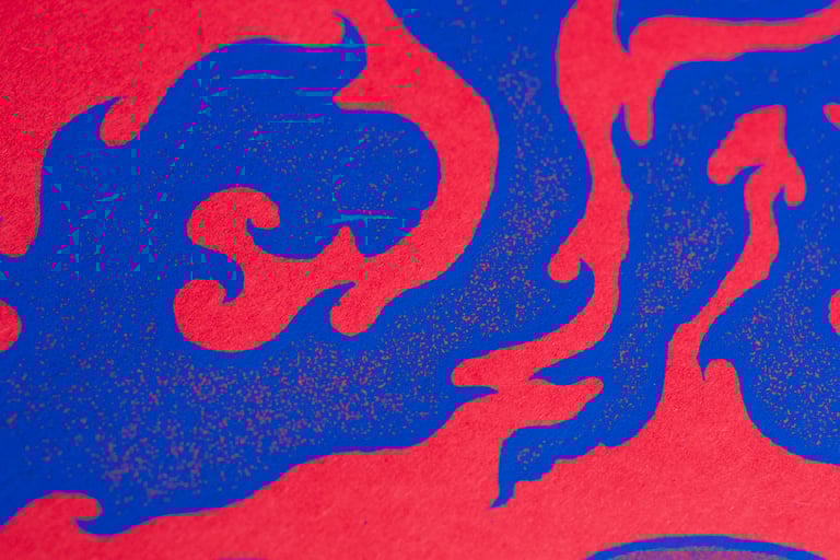 2 colors. Screen printed on 300 gr red paper.